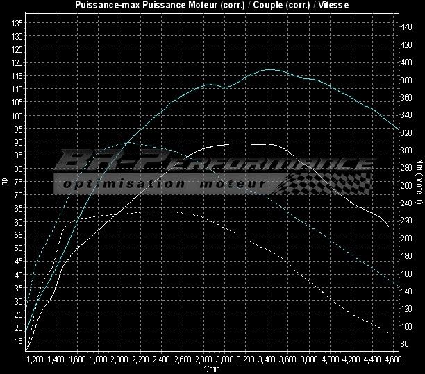 Différentes mesures sur banc de puissance