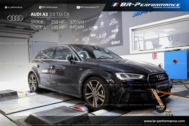 Véhicule: Audi A3 / A3 Berline 8V Mk1 - 2012-> 2016 Motorisation: 2.0 TDi CR A3 tdi 150 cv dsg6 de 2013 passé à 195 cv et 449 nm !!! anti patinage déclenché sur 3 premiers rapports ( même pas en mode sport !!!!) une tuerie !!! Une équipe BR PERFORMANCE AiX au top !!! Une reprog au top !!! Le résultat est là c'est parfait. Le plus :Nelly avec son sourire et l'accueil est particulièrement soigné et les explications et conseils à la hauteur que dire de plus