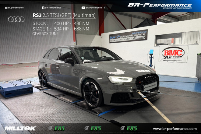 Audi RS3 2019 Stage 1 Éthanol multimap Comment changer de voiture pour moins de 1500€ 535 HP et 45€ Le plein Que demander de plus ? Merci à l’équipe BR Performance