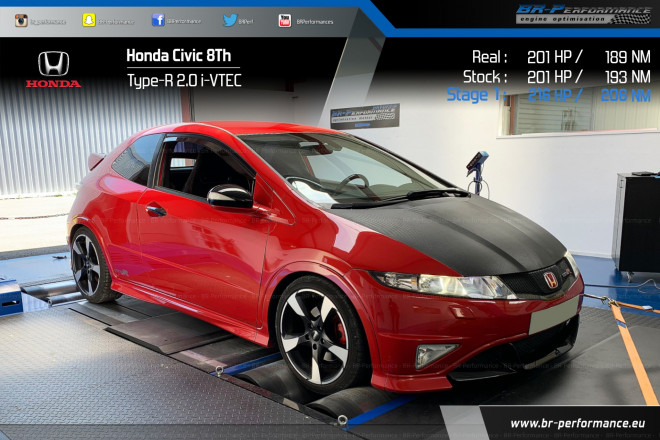 Très content du résultat sur ma Type R, la voiture est plus réactive à bas régime, Vtec décalé à 4800Trs/min et rupteur à 8500 + très bon accueil bref, que du positif pour Br Performance bayonne!