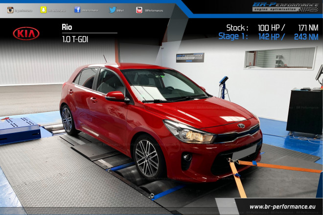 Reprogrammation d'unre Kia Rio 1.0 T-GDI. 100 ch 171 NM
