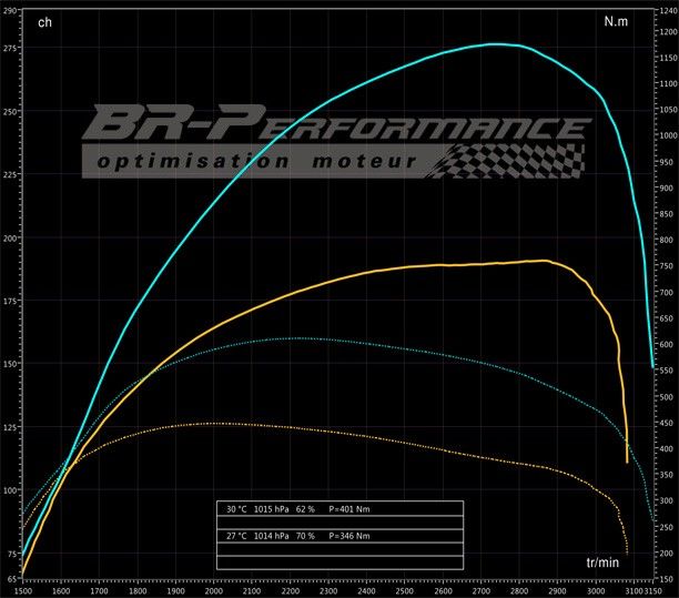 Différentes mesures sur banc de puissance
