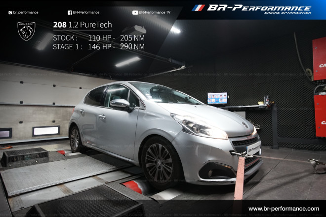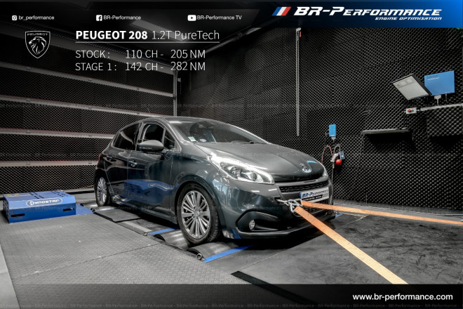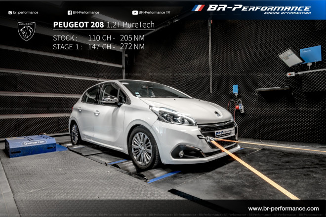 Reprogrammation de ma Peugeot 208 1.2 puretech 110ch a br-performance de Bordeaux Un accueil très sympathique et pro On est bien installé dans la salle d'attente durant la reprogrammation Je suis passé de 105 a 140ch et de 205nm a 270nm de couple pour un poid de la voiture de 1060kg donc rapport poid / puissance plus que convenable Je suis ravie dès qu'on appuis sur l'accélérateur on prend du plaisir et c'est ce que je recherchais