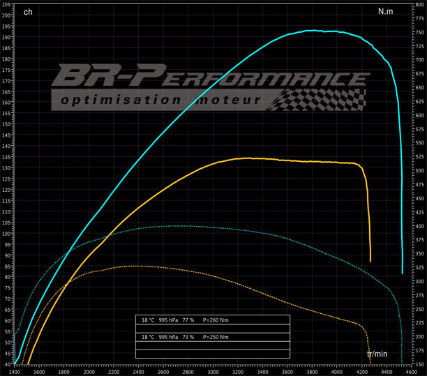 Différentes mesures sur banc de puissance