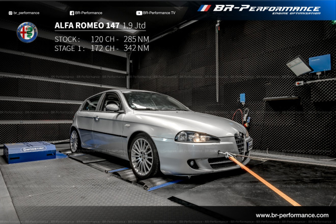 La voiture affiche maintenant 161.7 chx avec la reprog faite le 26/06/2012, d'origine elle sortait 120.6chx. C'est vraiment un truc de malade le changement. Je suis très content du service de BR, ils sont tops, en plus les mecs sont des pros en conseil, entretien. Je recommande cette adresse à tout le monde.Dommage que le stage 2 n'existe pas pour la gamme Alfa.